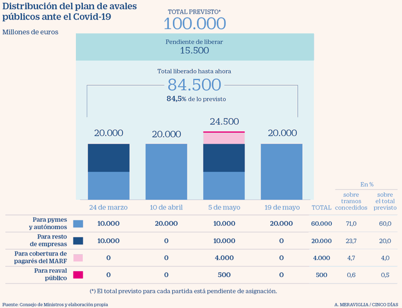 Distribución del plan de avales públicos ante el COVID19. Fuente: Cinco Días.